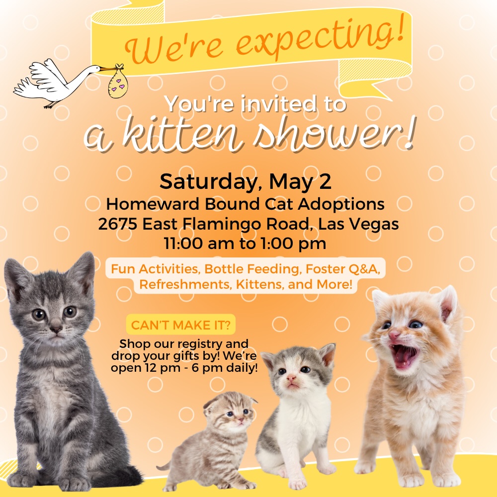 Visit our adoption center at 2675 E. Flamingo, near Eastern, designed to minimize the stress and make it easier for cats to find loving homes like yours.